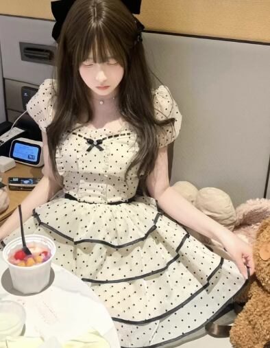 ドット柄バルーンスリーブレースワンピース 32M-ONE-015