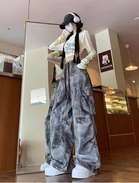 タイダイ柄カーゴワイドパンツ ストリートカジュアル 32M-PT-011
