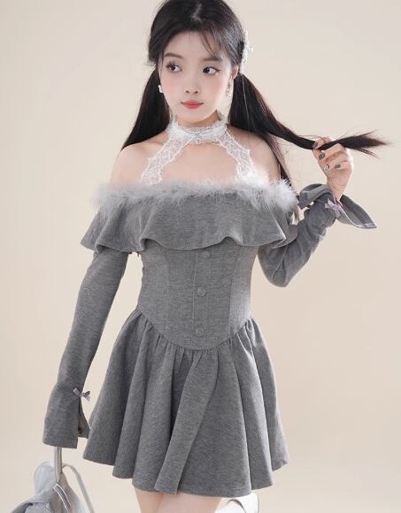 フリルレースホルターネックワンピース 32M-ONE-018