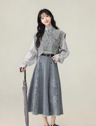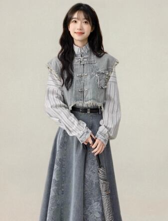 チャイナ風レーストップ&ベスト&スカートセット 32M-SET-042
