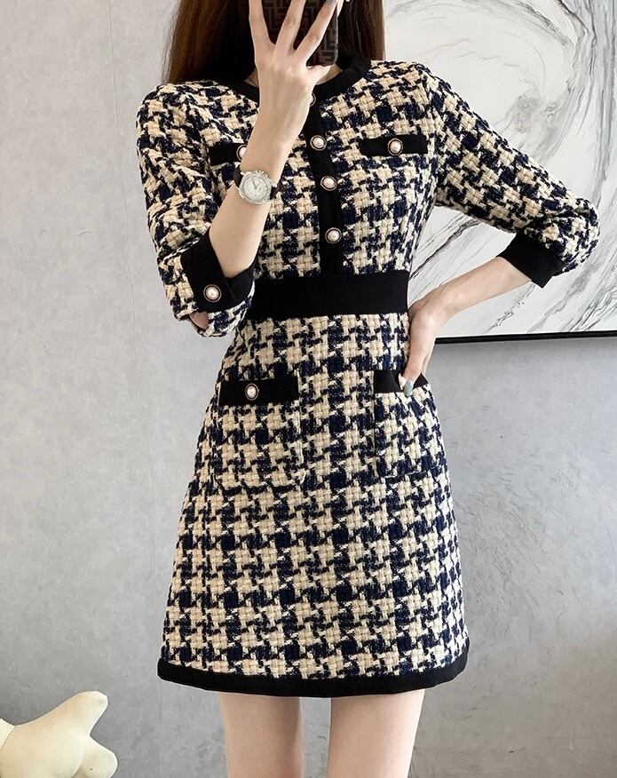 ラグジュアリー千鳥チェックAラインワンピース 32M-ONE-046