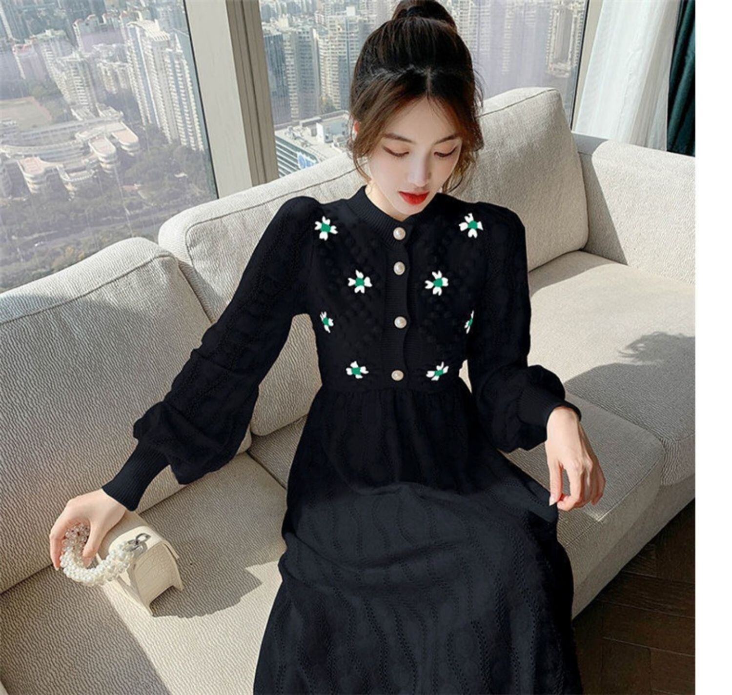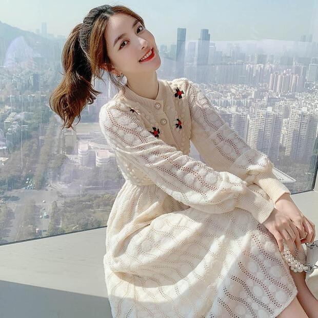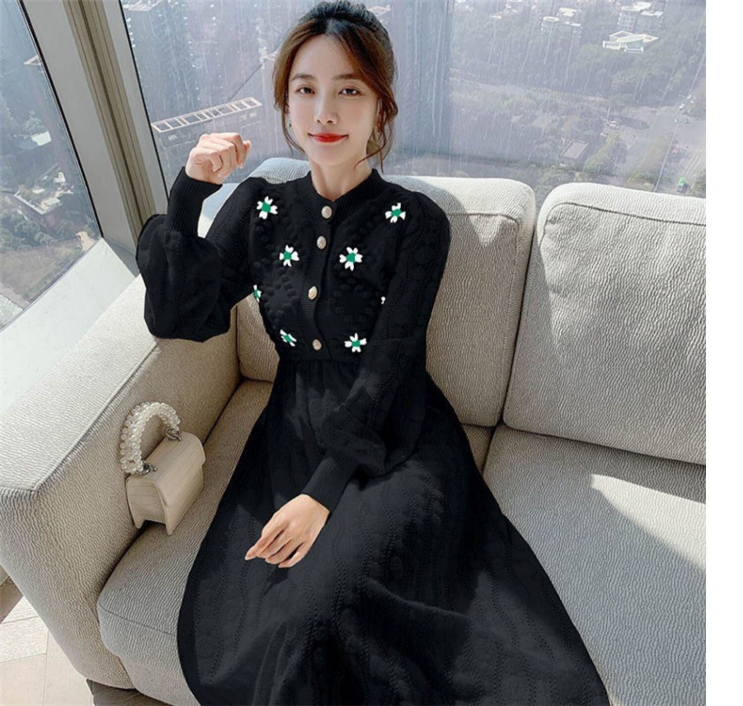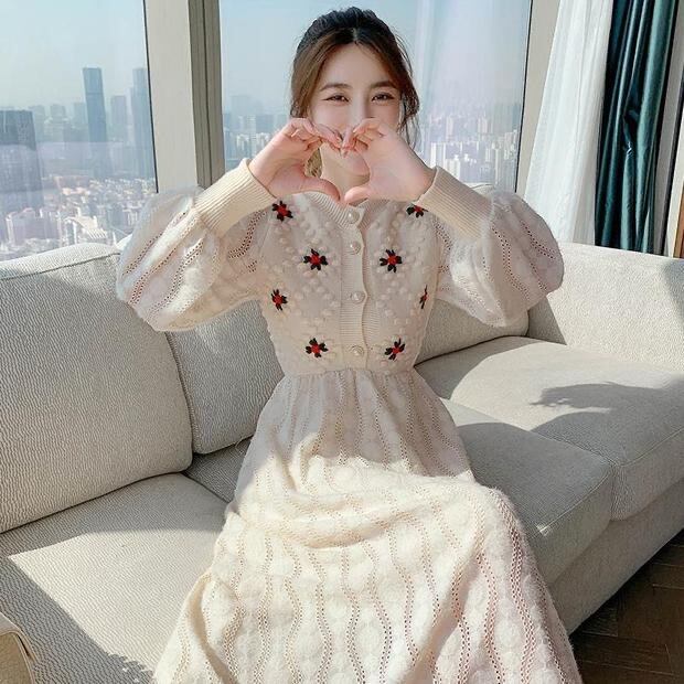 刺繍ニットロングワンピース 32M-ONE-041