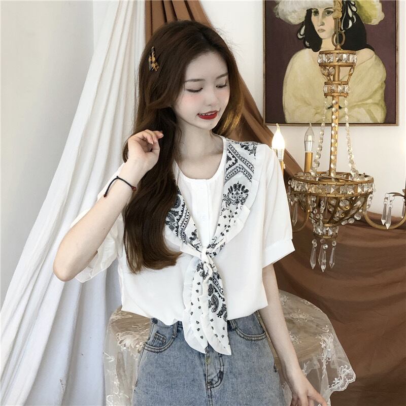 幾何学模様スカーフ付きTシャツ TO-TS600
