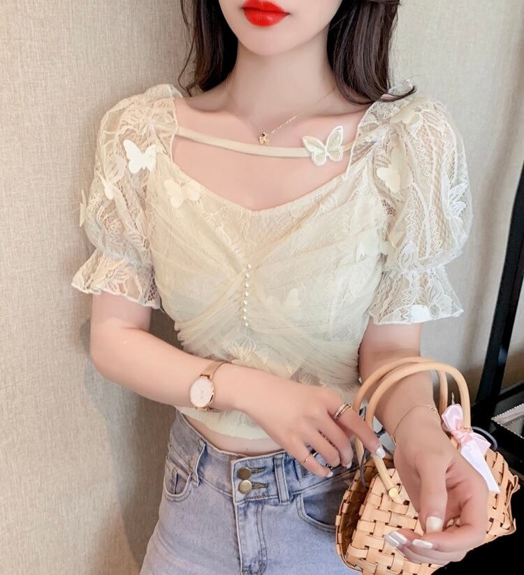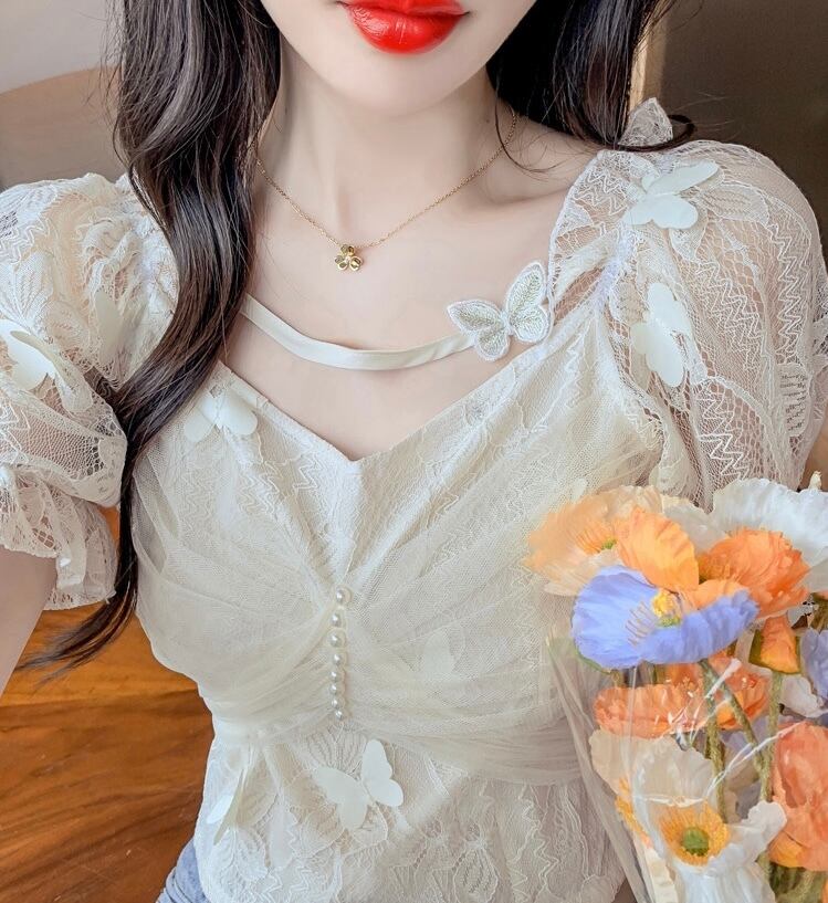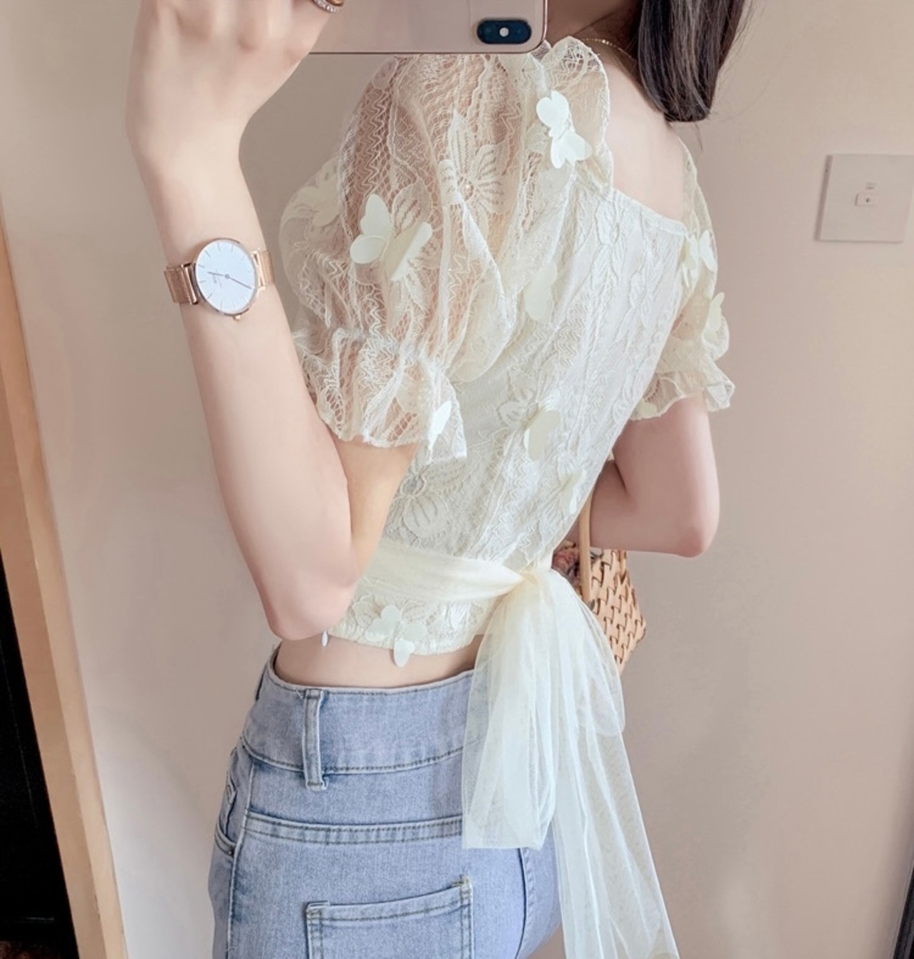 バタフライデザインバックリボンパフスリーブトップス TO-BR800