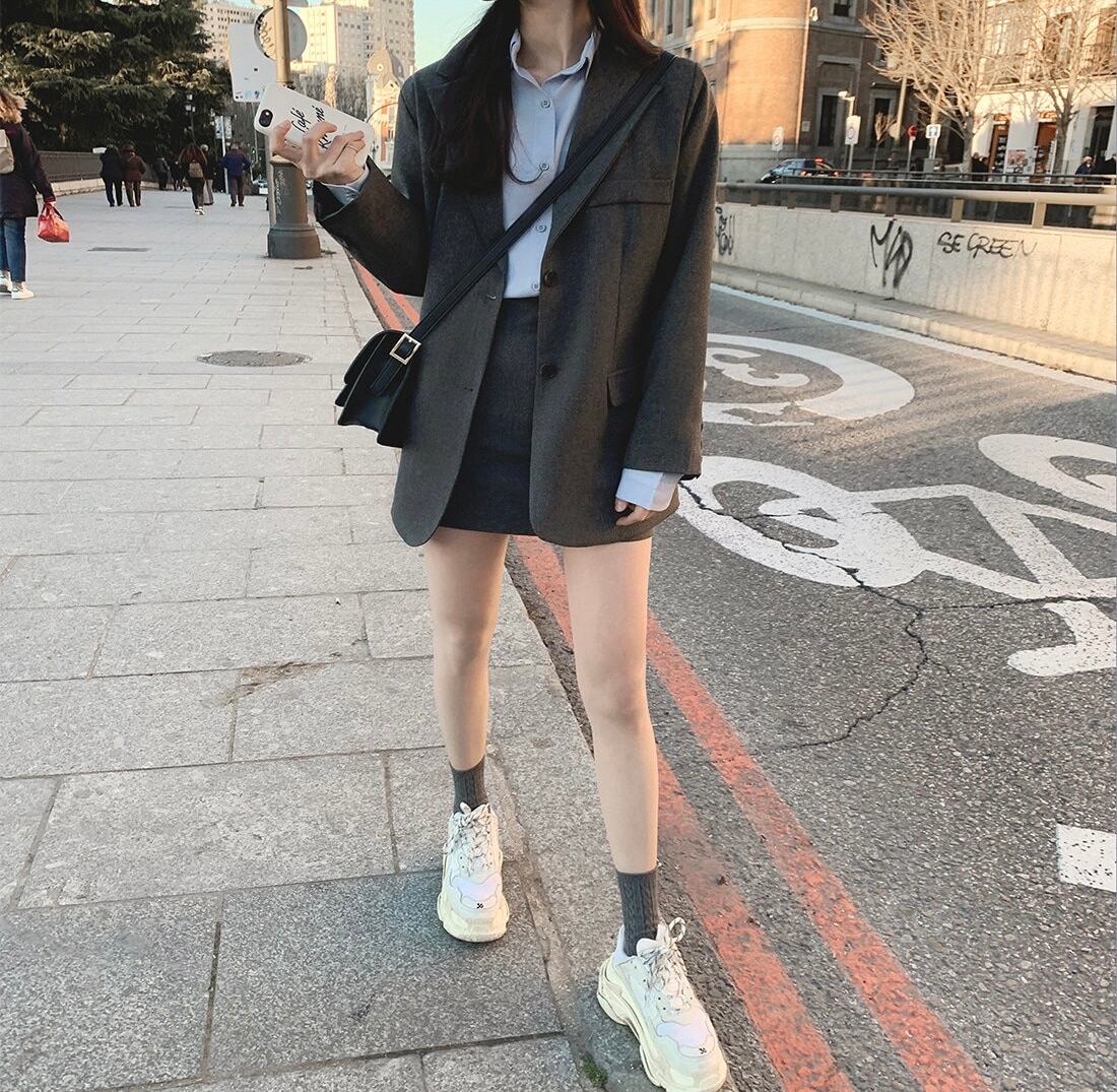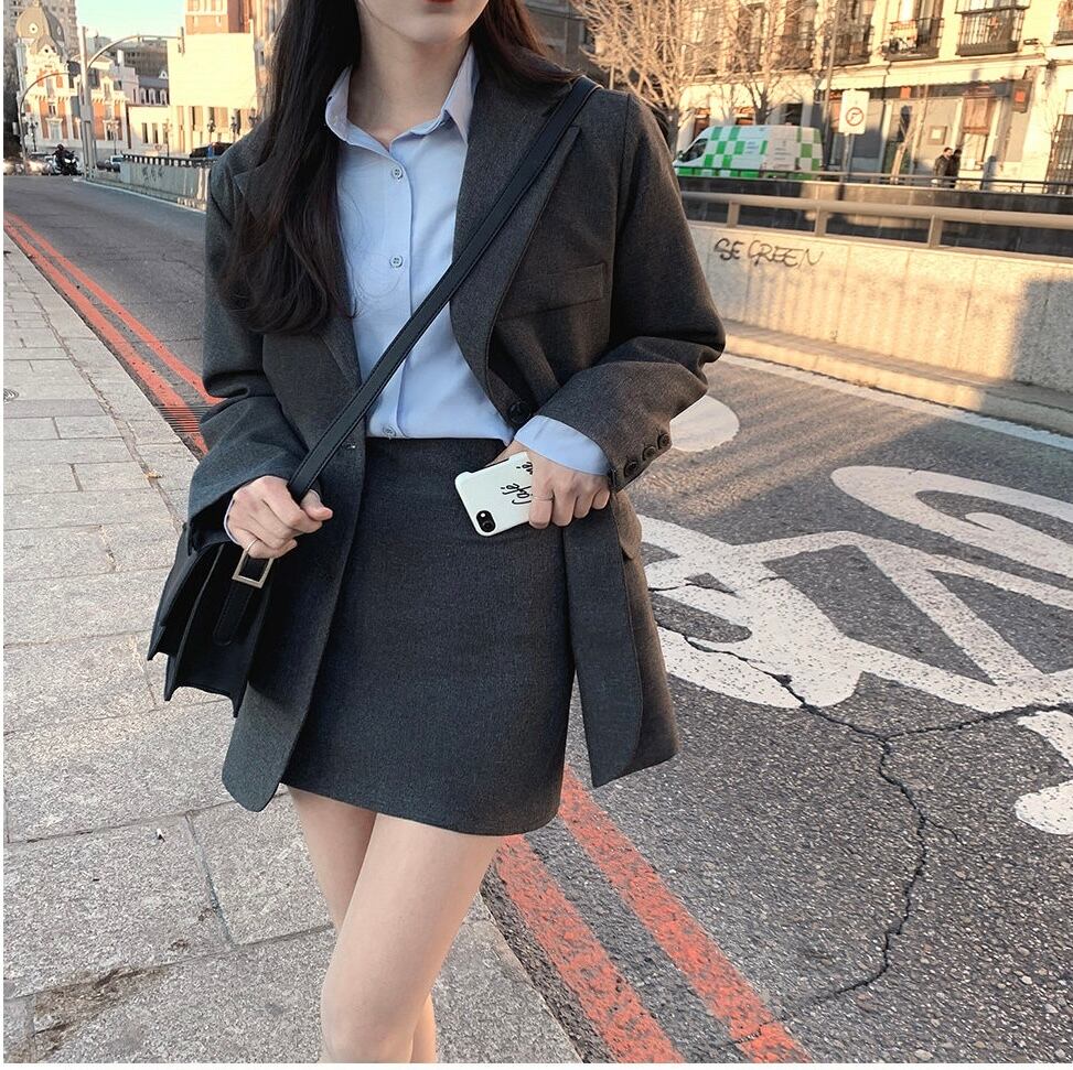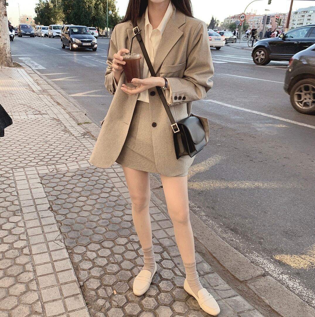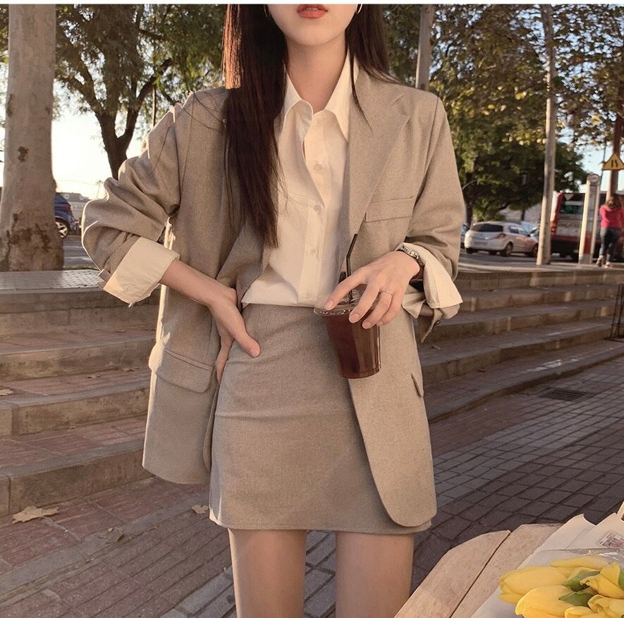 ダブルボタンシンプルジャケット×台形スカート セットアップ ST-SUP1300