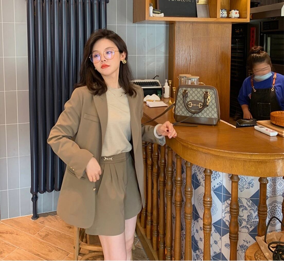 アクセントプリーツショートパンツ×ダブルボタンシンプルジャケット セットアップ ST-SUP1600