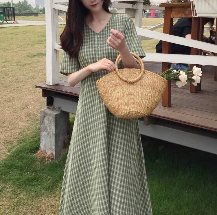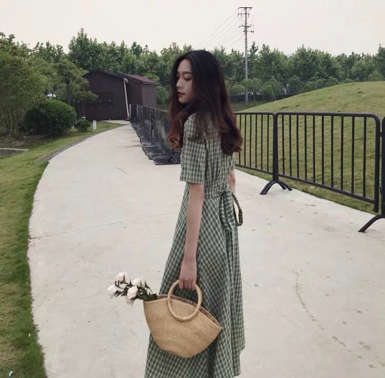 バックリボンギンガムチェックロングワンピース 32M-ONE-061
