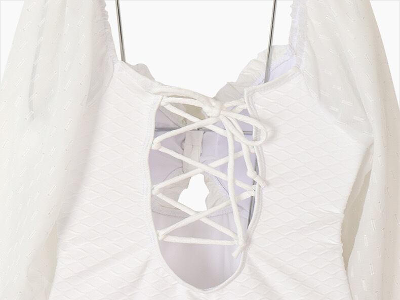 バックレースアップオフショルシースルーフリルワンピース 水着 OTR-SWM-OP1400