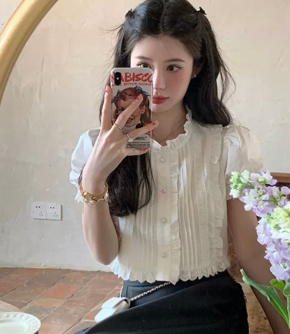 バルーンスリーブレースフリルブラウス TO-BR2300