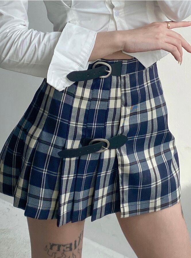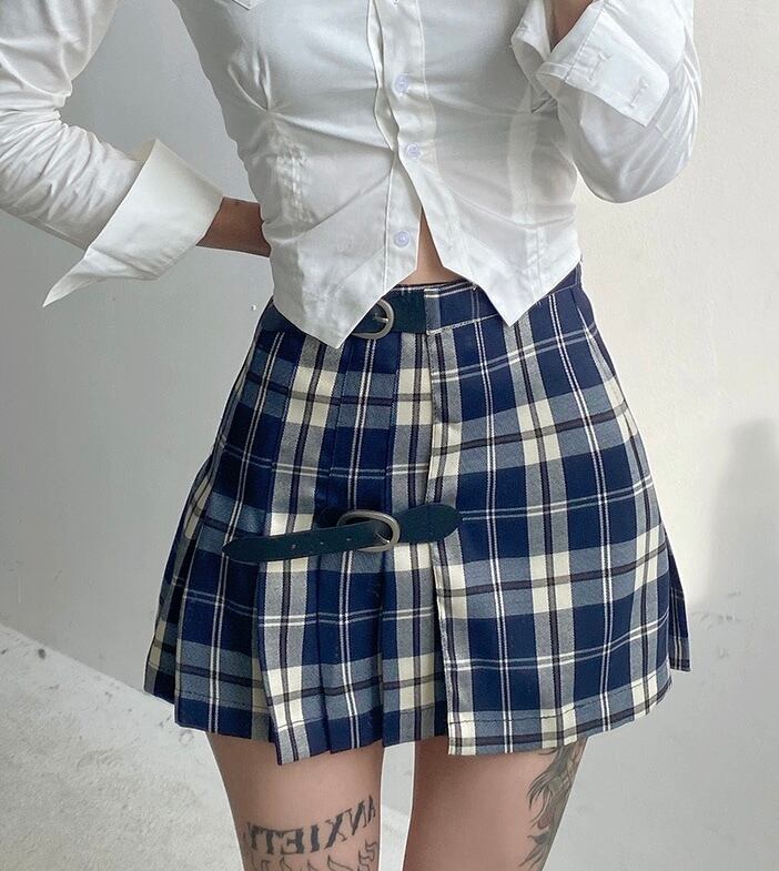 チェックベルト切り替えプリーツミニスカート 32M-BOTTOM-022