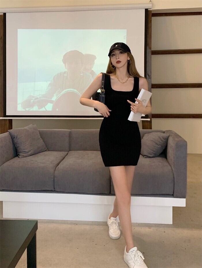 スクエアネックシンプルタンクトップミニワンピース 32M-ONE-067