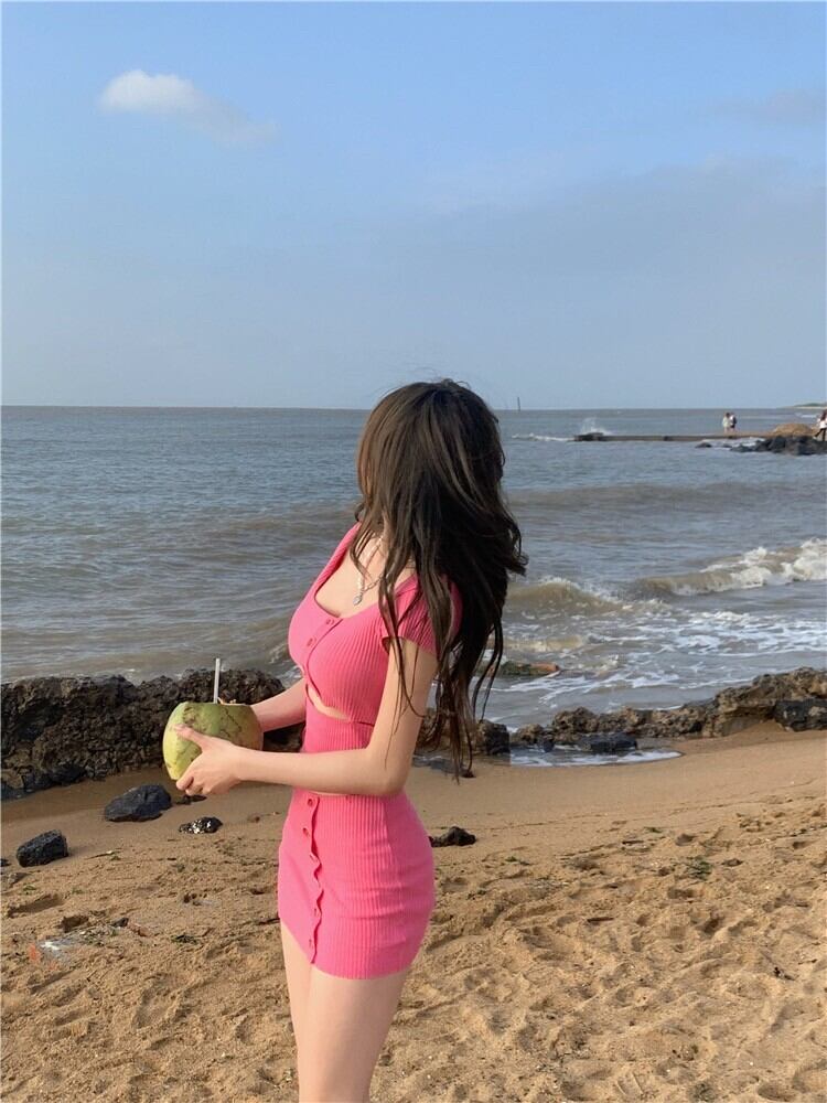 スリムフィットアンバランスカットアウトミニワンピース 32M-ONE-077