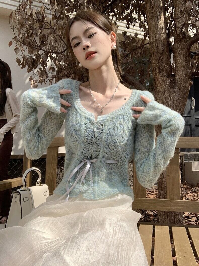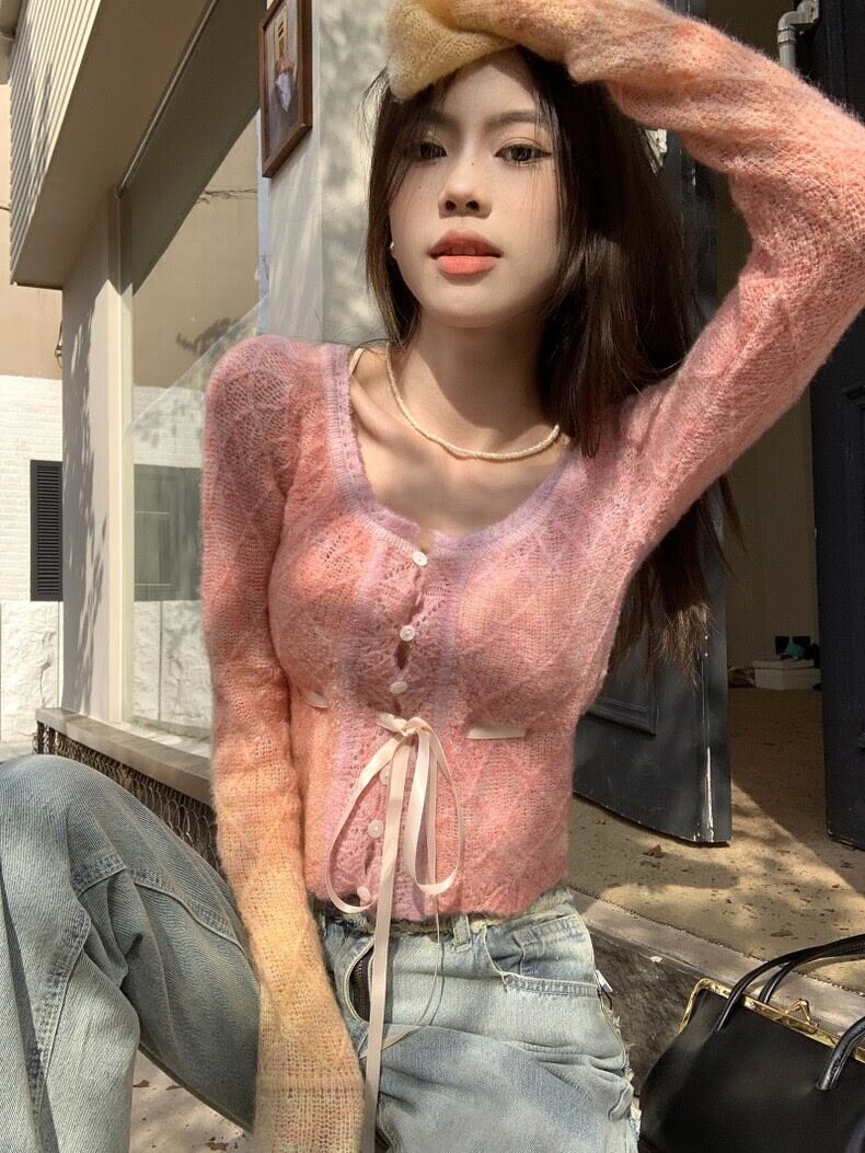 グラデーションカラーフレアスリーブクロップトップス