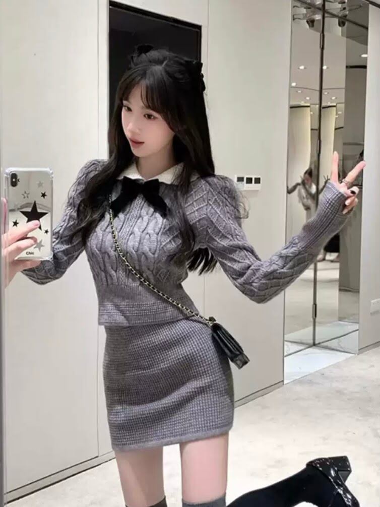 フレンチニットリボンミニスカート セットアップ ST-SUP4302