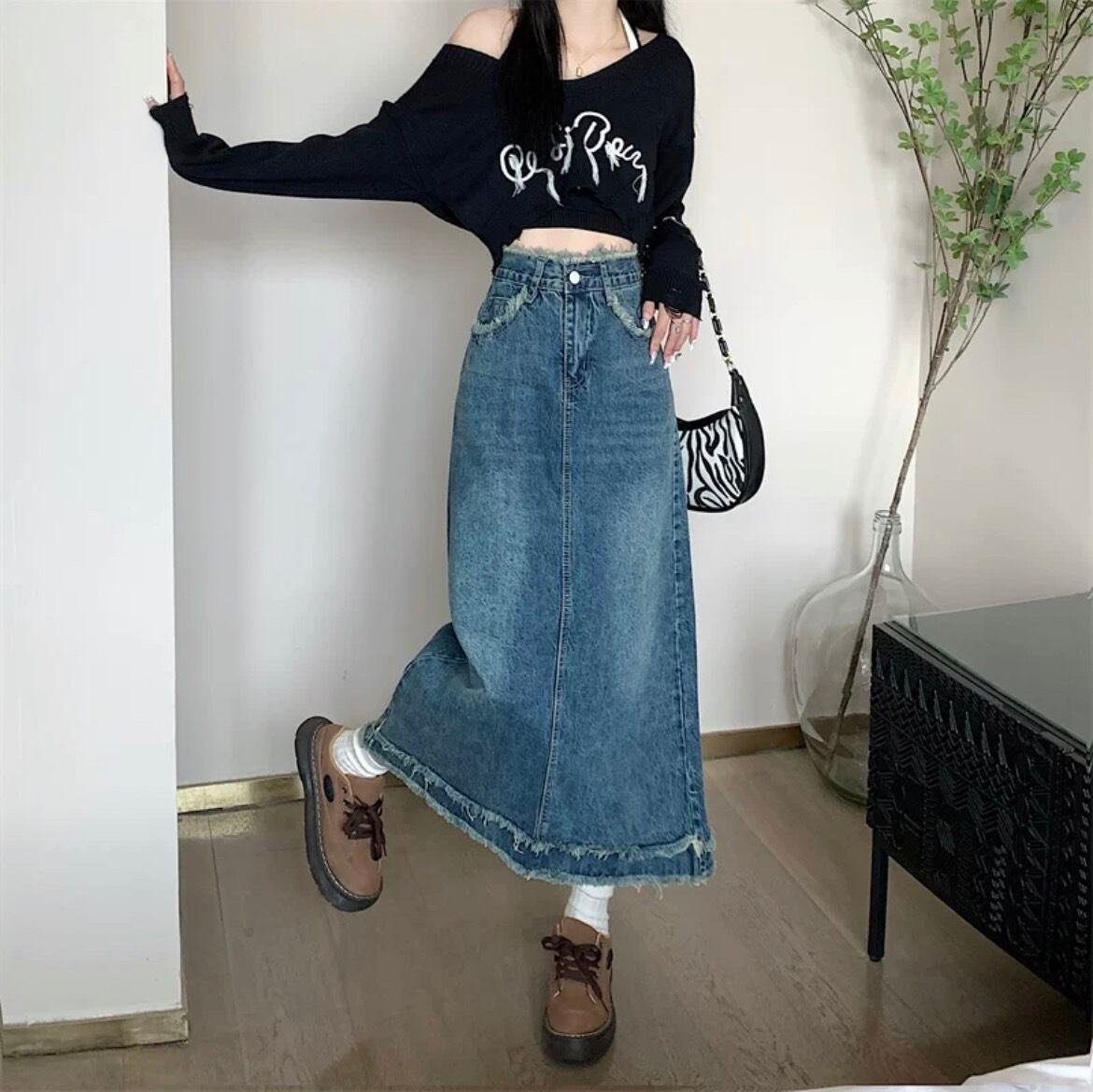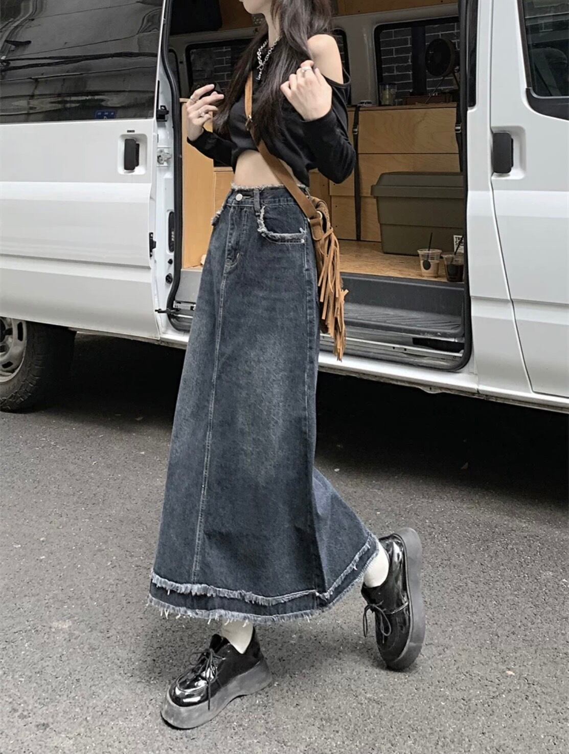 ダブルラインフリンジデニムロングスカート SK-LNG100