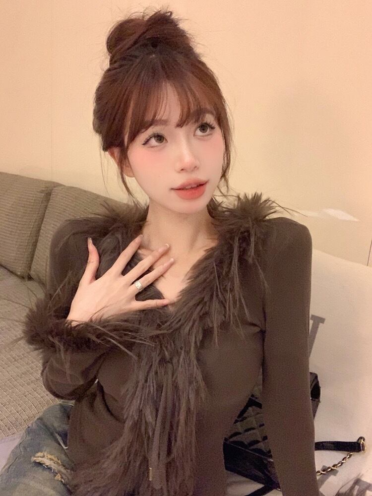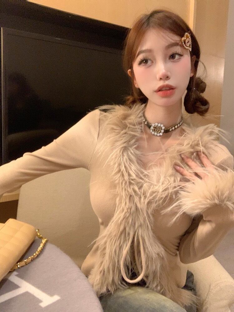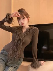 ファー付きフロントリボンデザイントップス TO-LNG700