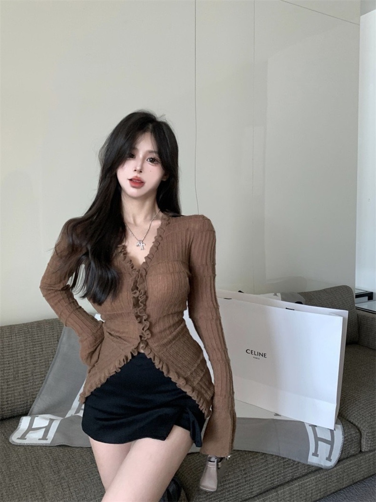 フレアスリーブラッフルリブニット TO-NT1000