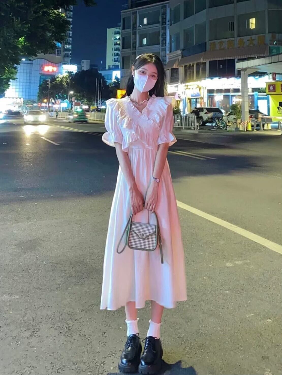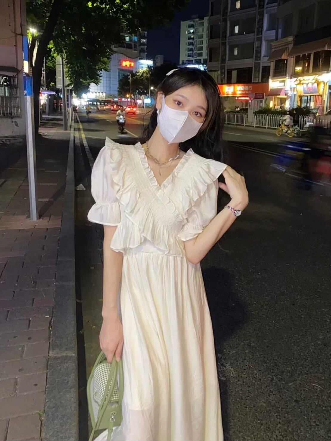 クロスフリルフレアロングワンピース 32M-ONE-037