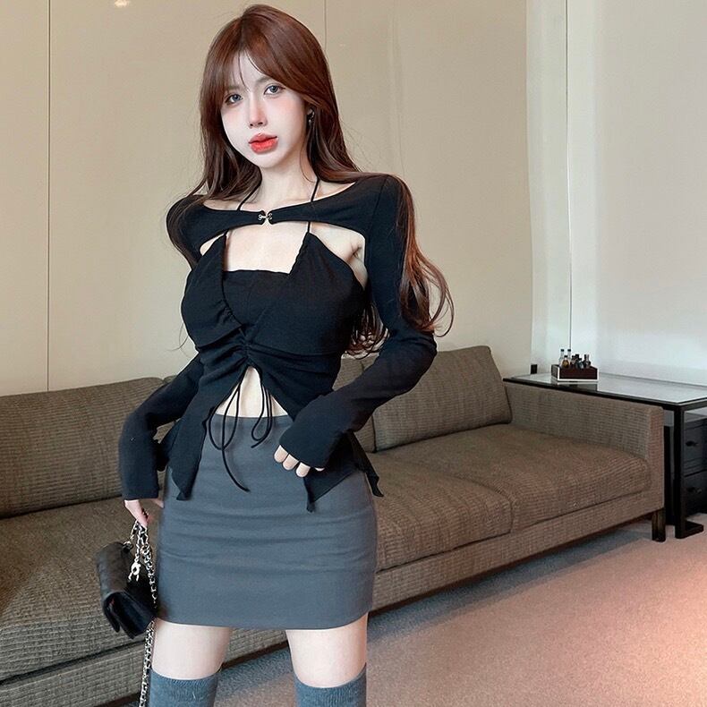 セクシーデザインクロップドドロストトップス ツーピース ST-ESB1402