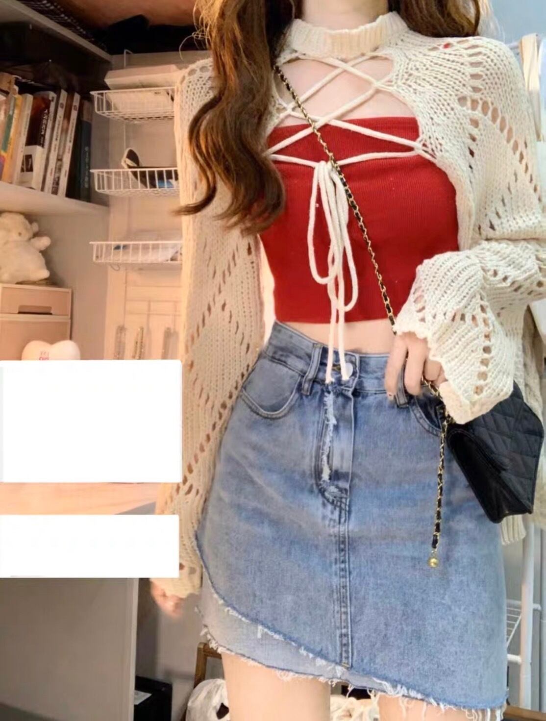 ケーブルニットレースアップデザインカーディガン TO-CD1200