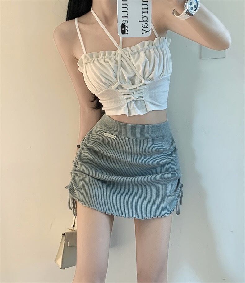 ドロストメロウフリルリブニットミニスカート 32M-BOTTOM-020