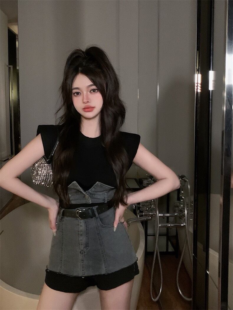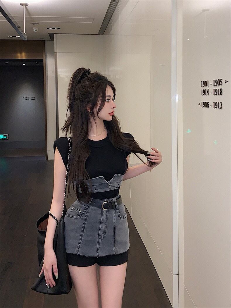 【ポイントデニム切り替えTシャツデニムスカパン セットアップ】または【ST-SUP3200】