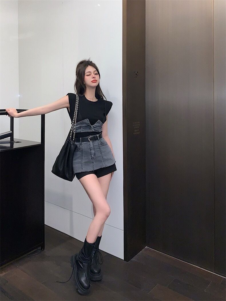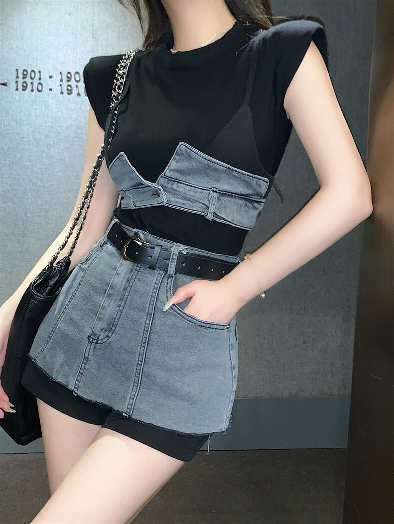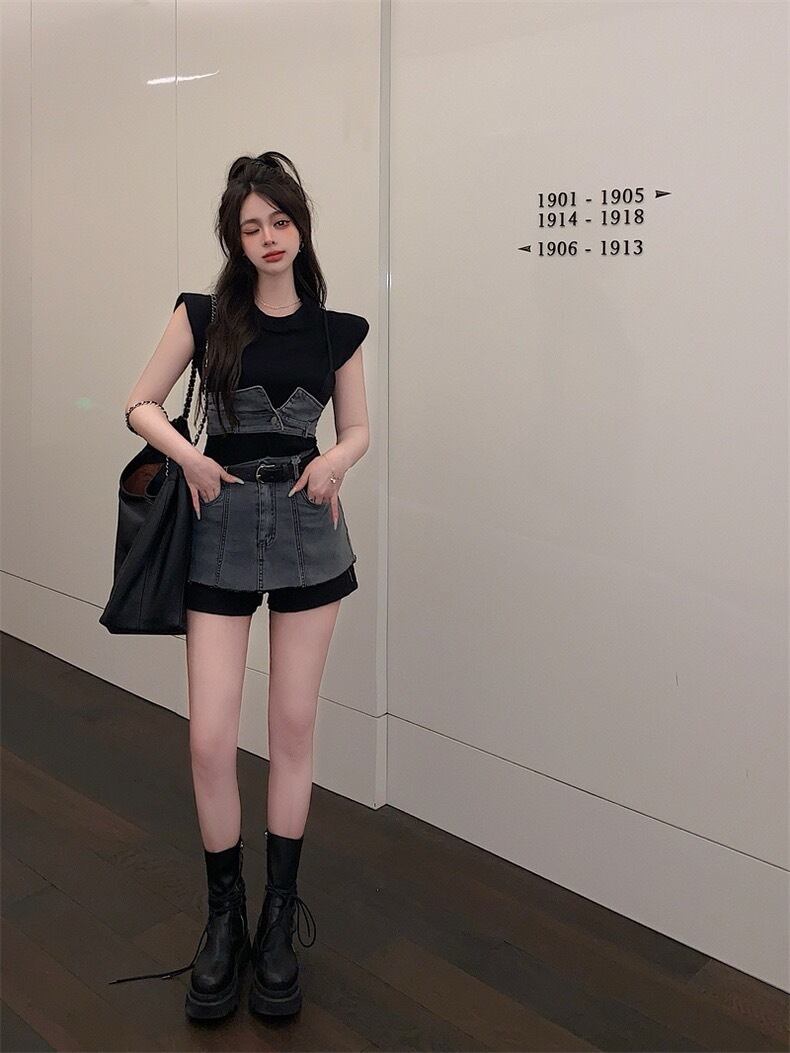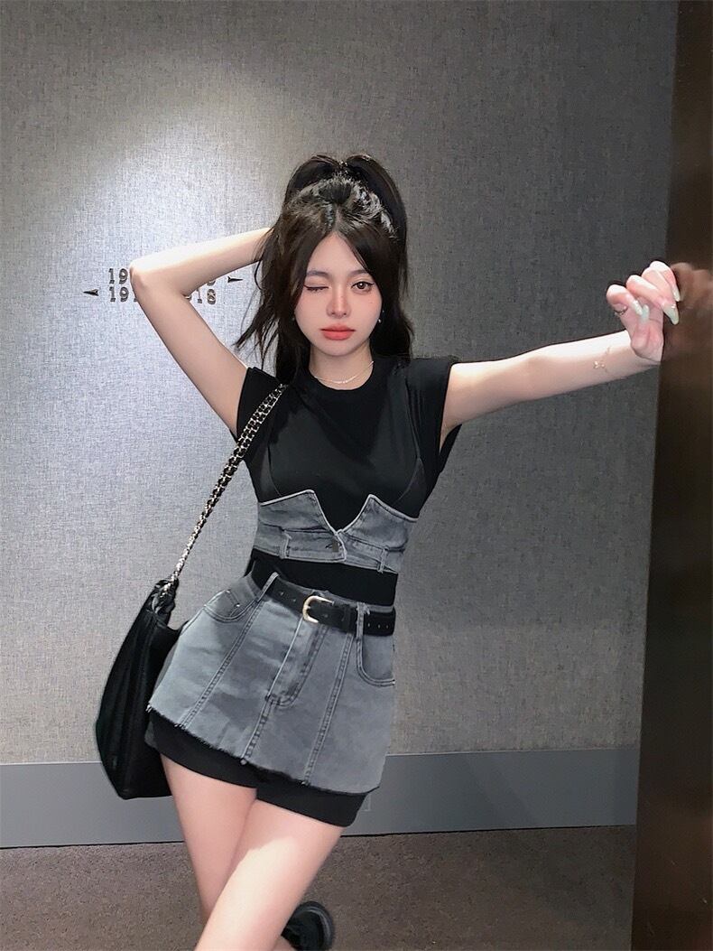 【ポイントデニム切り替えTシャツデニムスカパン セットアップ】または【ST-SUP3200】