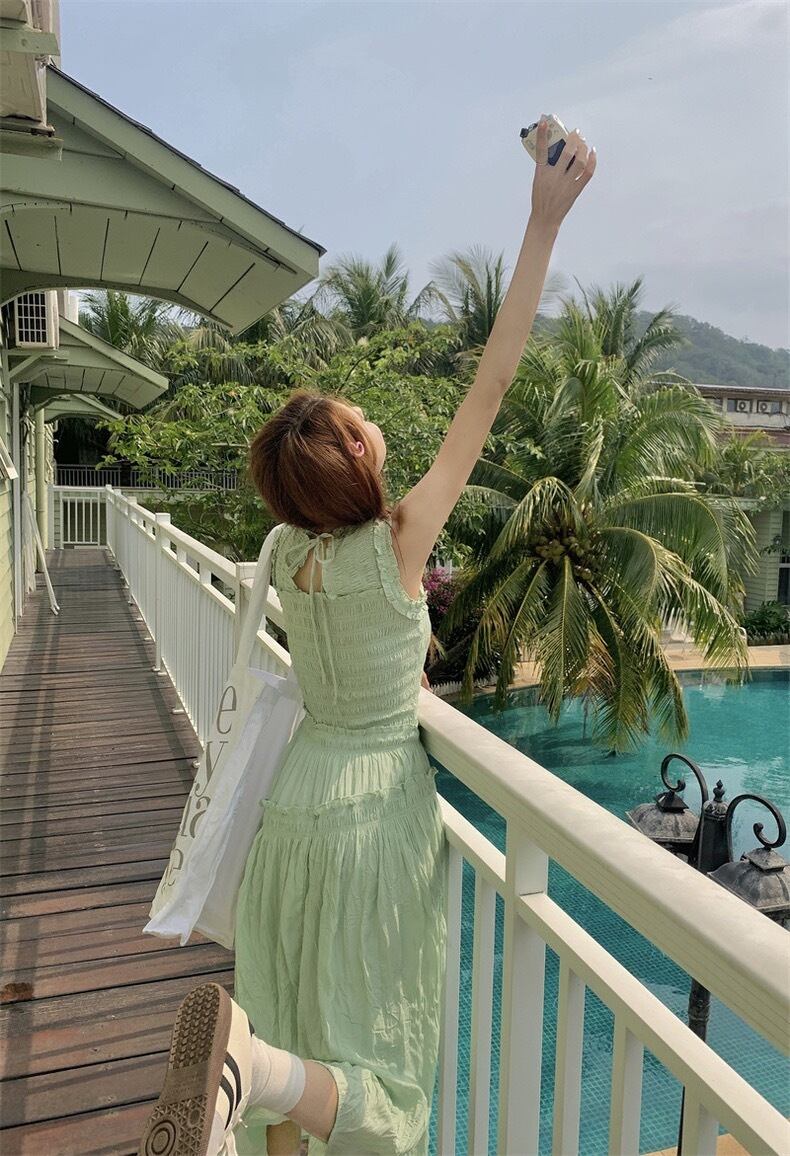 ミントシャーリングノースリーブフレアロングワンピース 32M-ONE-117