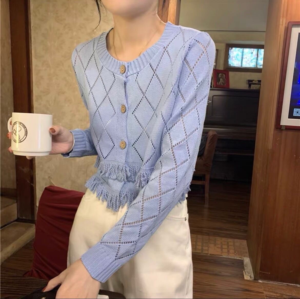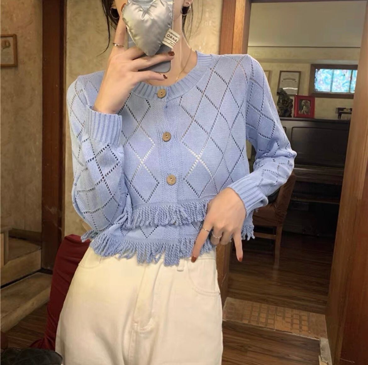 ダブルフリンジショートニットカーディガン 32M-OUT-016