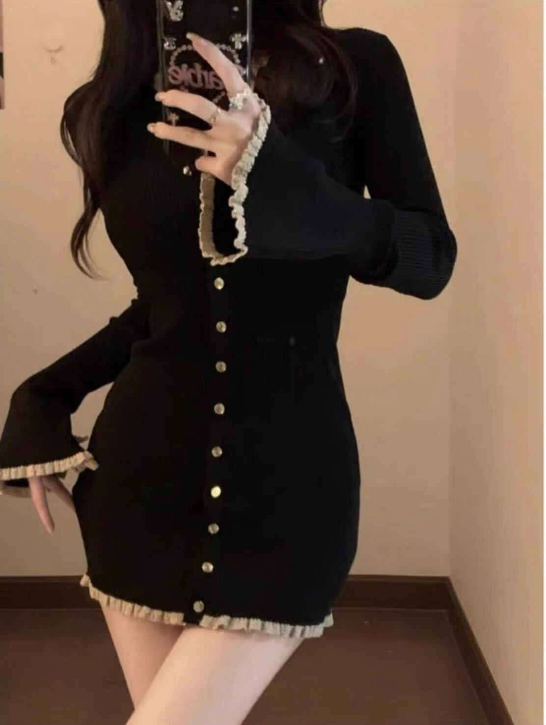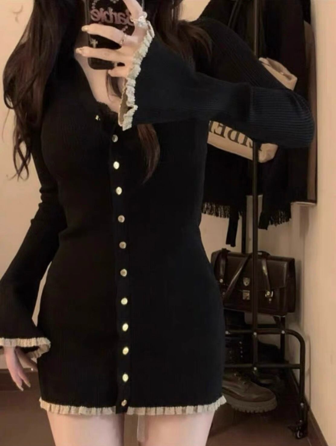 Vネックフレアスリーブフレンチミニワンピース 32M-ONE-138
