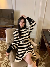 ベルト付きボーダーニットミニワンピース 32M-ONE-136