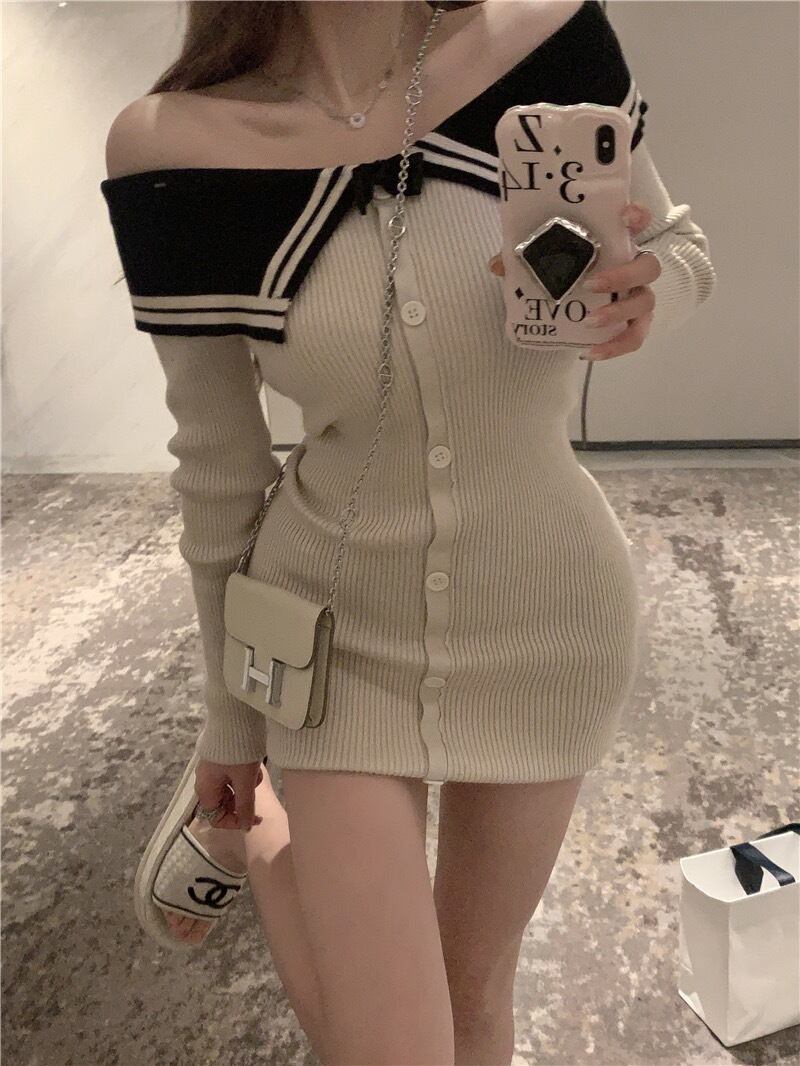 セーラー風オフショルリブニットミニワンピース 32M-ONE-137