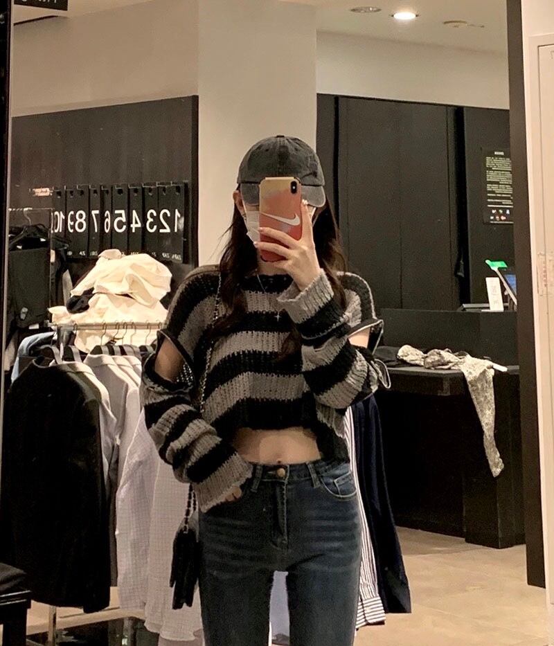 ショート丈ボーダーショルダージップニット TO-NT3100