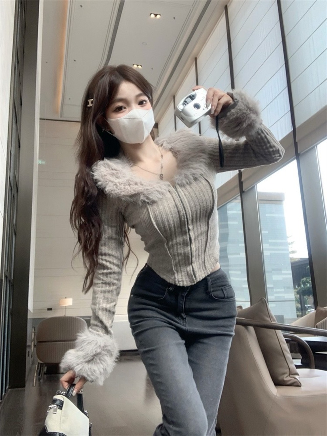 ソリッドカラーフェイクファートップス TO-LNG3700