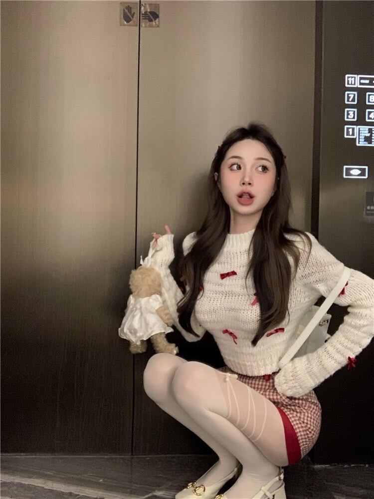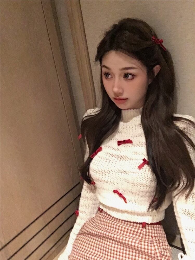 セットアップ/ホリデーカラーリボンニットチェックミニスカート セットアップ ST-SUP5300