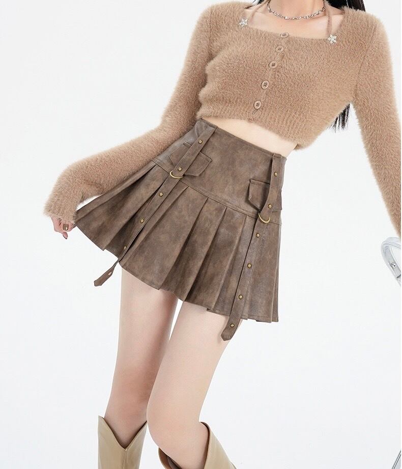 全2色/フェイクレザーダブルベルトプリーツミニスカパン SK-PA2000