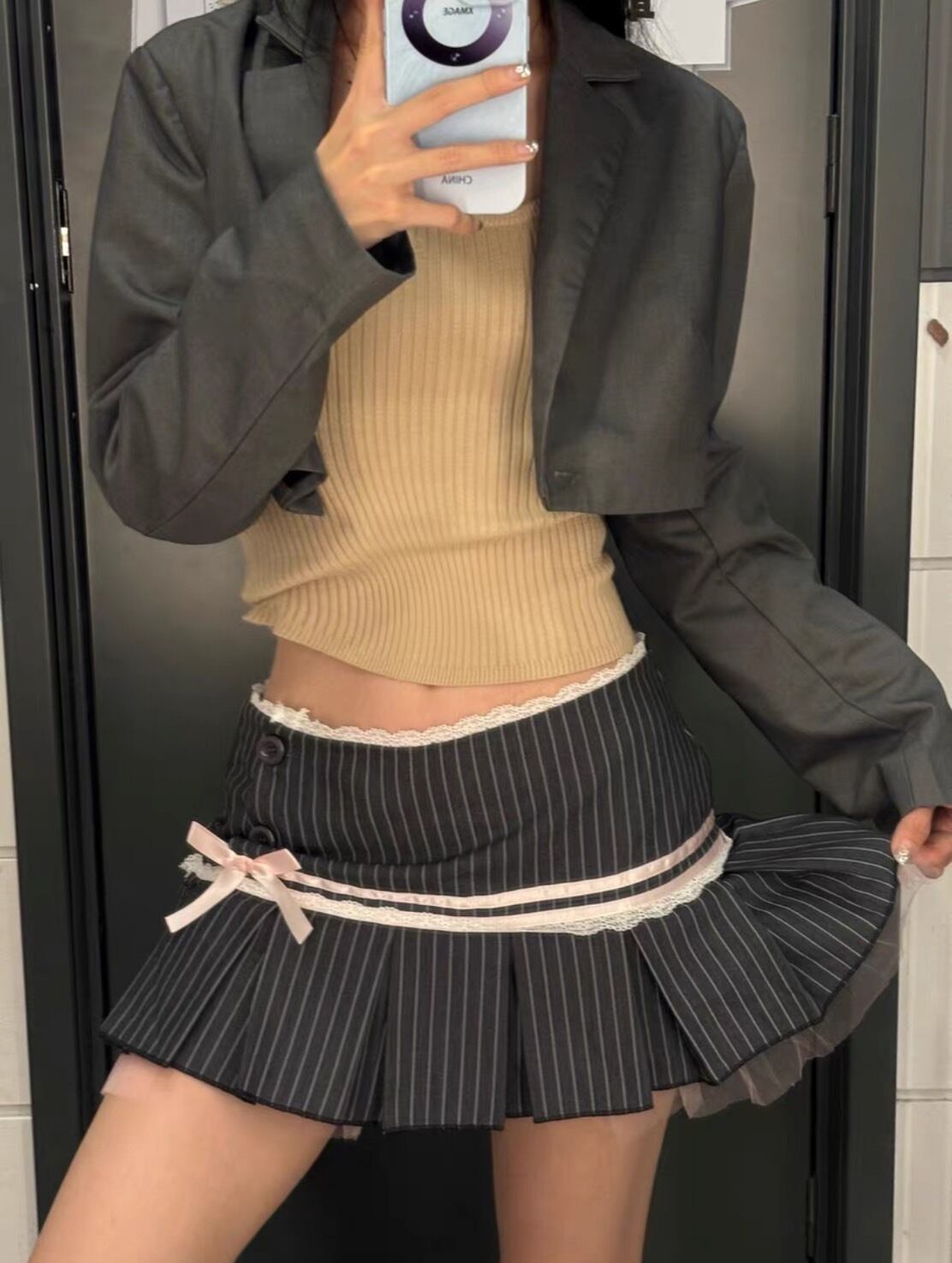 レースリボンストライププリーツローライズミニスカート SK-MN2900