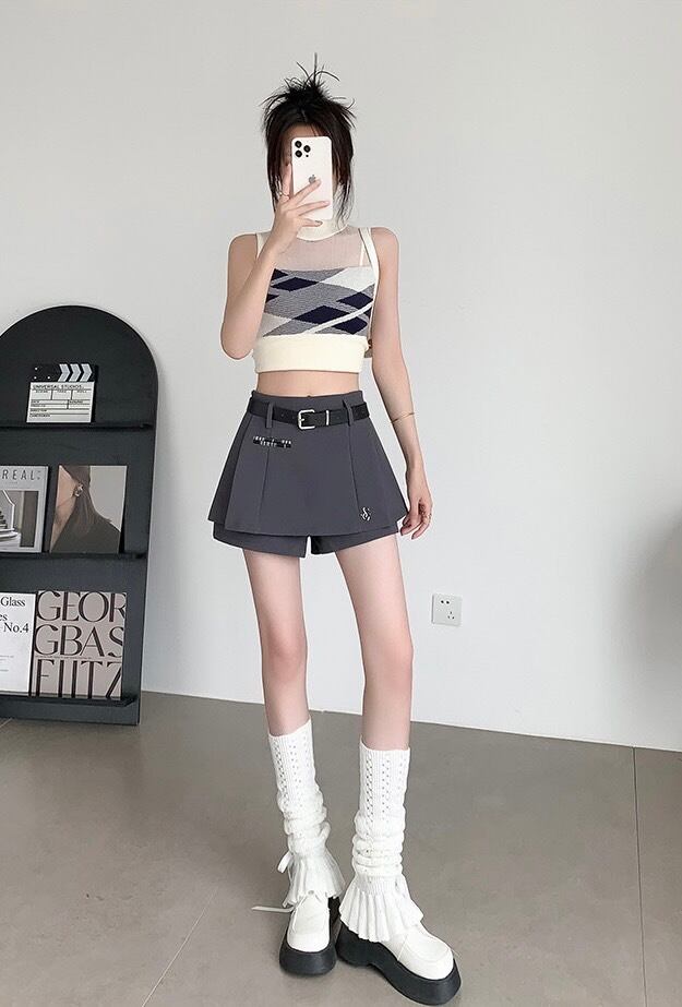 全2色/ベルト付きAラインデザインスカパン SK-PA2200