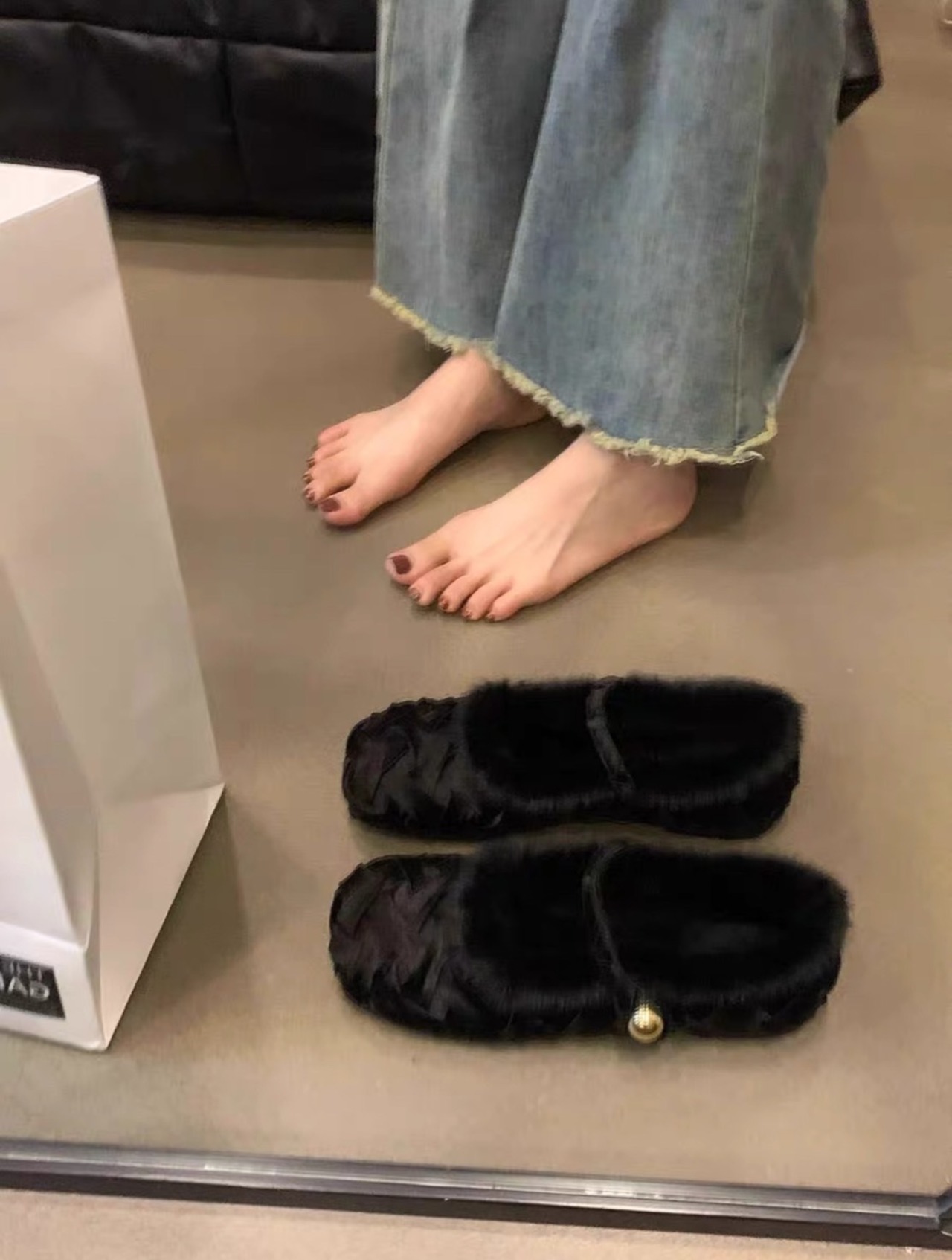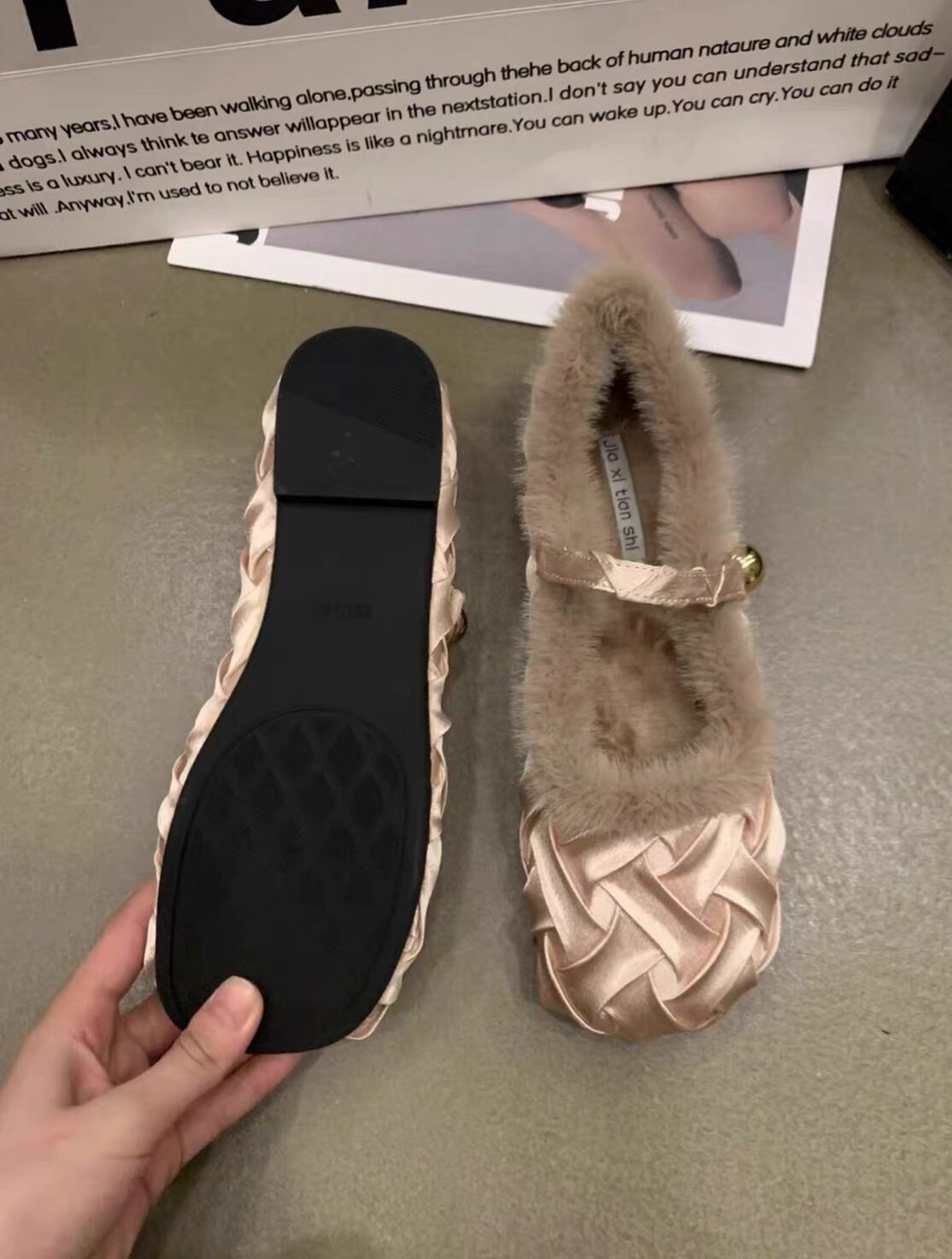 全2色/フラットファーサテンシューズ SHS-400