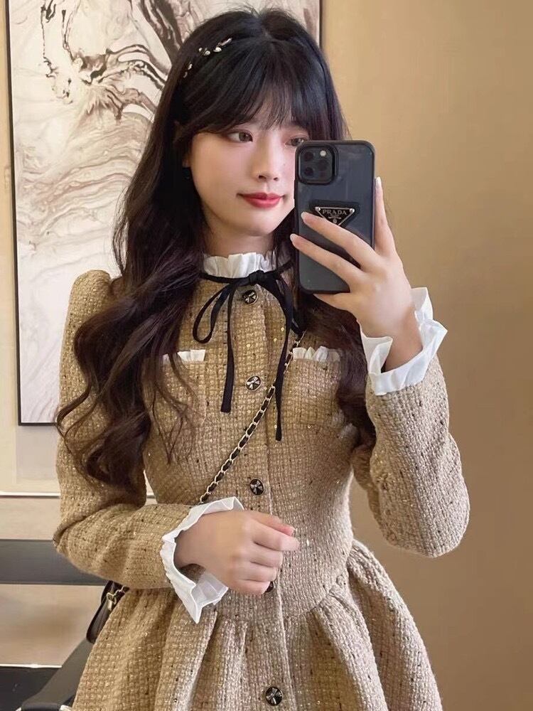 フレンチガーリーリボンタイツイードフレアミニワンピース 32M-ONE-148