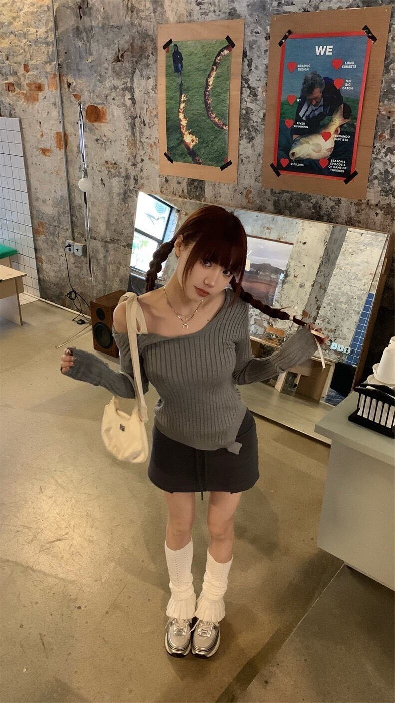 ワンショルダーリボントライアングルリブニット TO-LNG5600