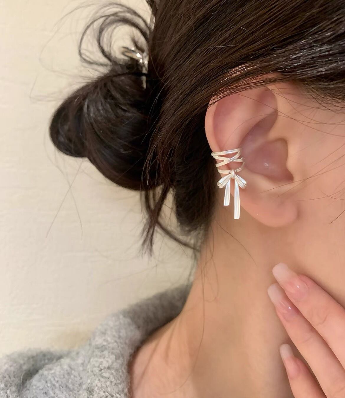 シルバーレースアップリボンイヤーカフ OTR-ACC-PC600