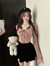 ホルターネックリボンラウンドネックフィットトップス TO-LNG7500