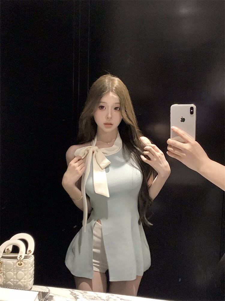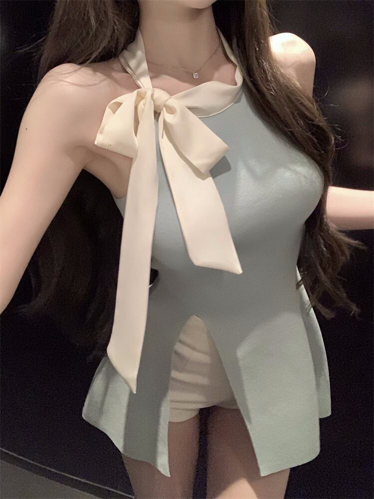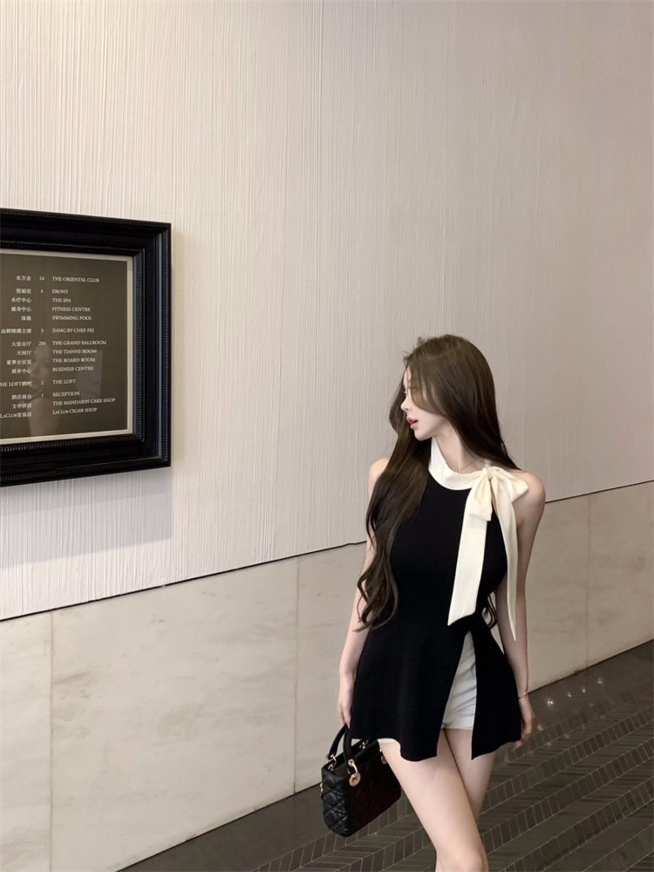 全2色/リボンタイスリットノースリーブチュニック TO-NS1500
